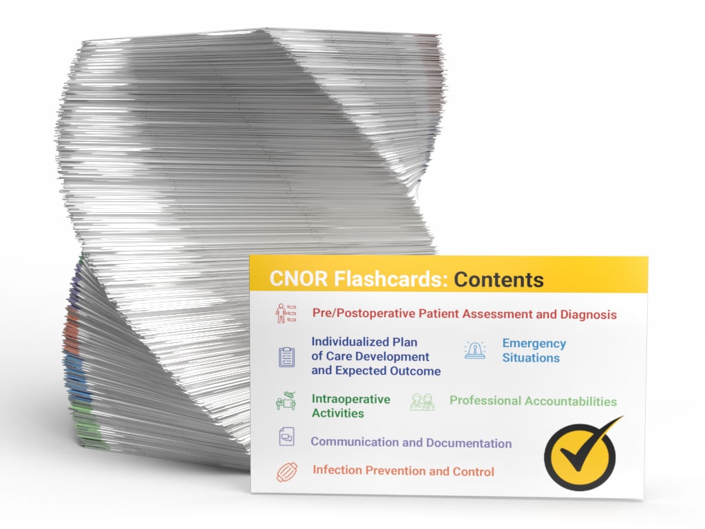 Remember, this is just a small sampling of the topics covered in our system. Overall, you get our premium-quality flashcards covering everything you'll need to succeed on the CNOR test.